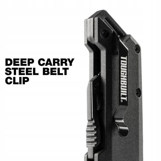 Безопасно, два -позиционное блокировка лезвия позволяет работать под углом 45 °, а кнопка отпуска позволяет быстро и удобно заменить лезвия без использования дополнительных инструментов. Дополнительный закрепляющий зажим и отверстие для резки кабелей облегчает перенос и защиту ножа.
