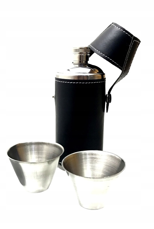 - И фляжка, и верхняя часть, составляющая футляр, обтянуты экологической кожей.
