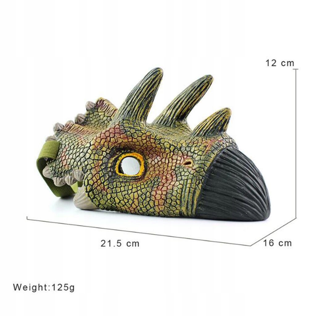 Высокая маска для имитации динозавра, форма и цвета реалистичны.