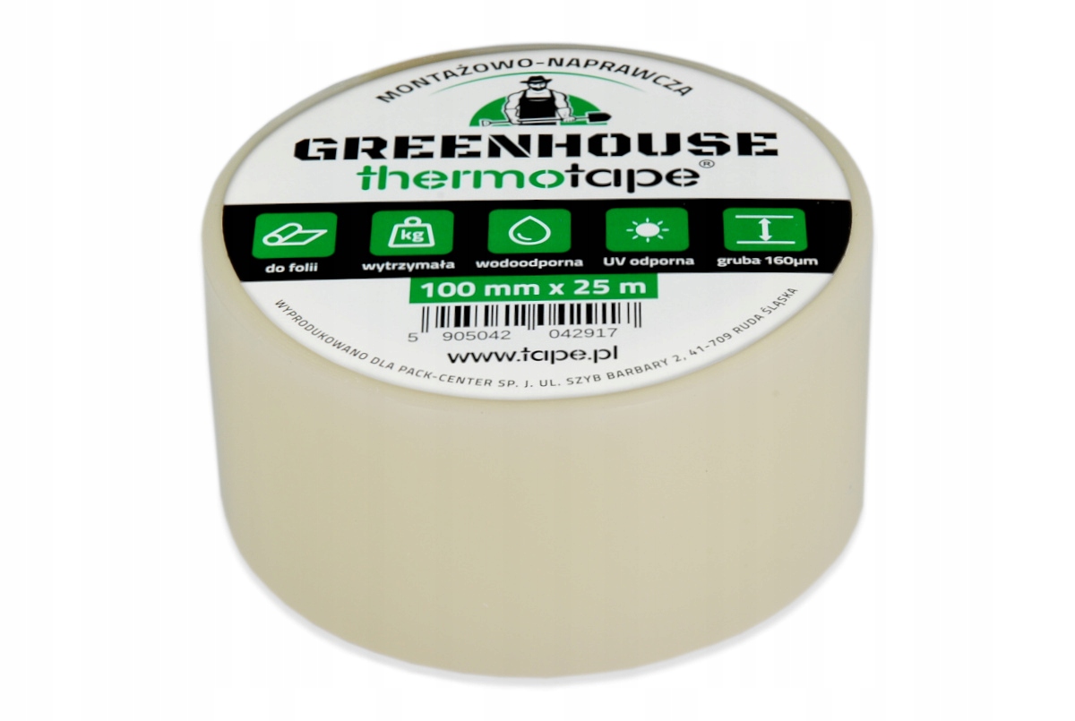 Это продукт европейского производителя, который мы предлагаем под собственным брендом THERMOTAPE,который уже много лет пользуется заслуженным доверием среди клиентов на польском рынке. THERMOTAPE GREENHOUSE — это очень прочная лента из толстой полиэтиленовой пленки, устойчивой к УФ-излучению, для внутреннего и наружного применения.