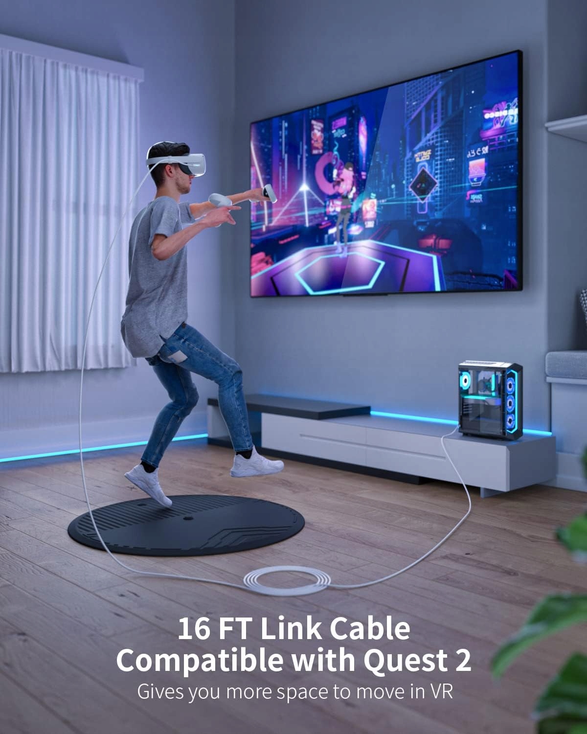 Совместимость с аксессуарами Quest 3: соединительный кабель ZYBER длиной 16 футов обеспечивает быструю и стабильную работу при подключении Oculus Quest 2 к игровому ПК, обеспечивая лучшее качество игр в виртуальной реальности при игре во все приложения Rift и игры Steam VR.