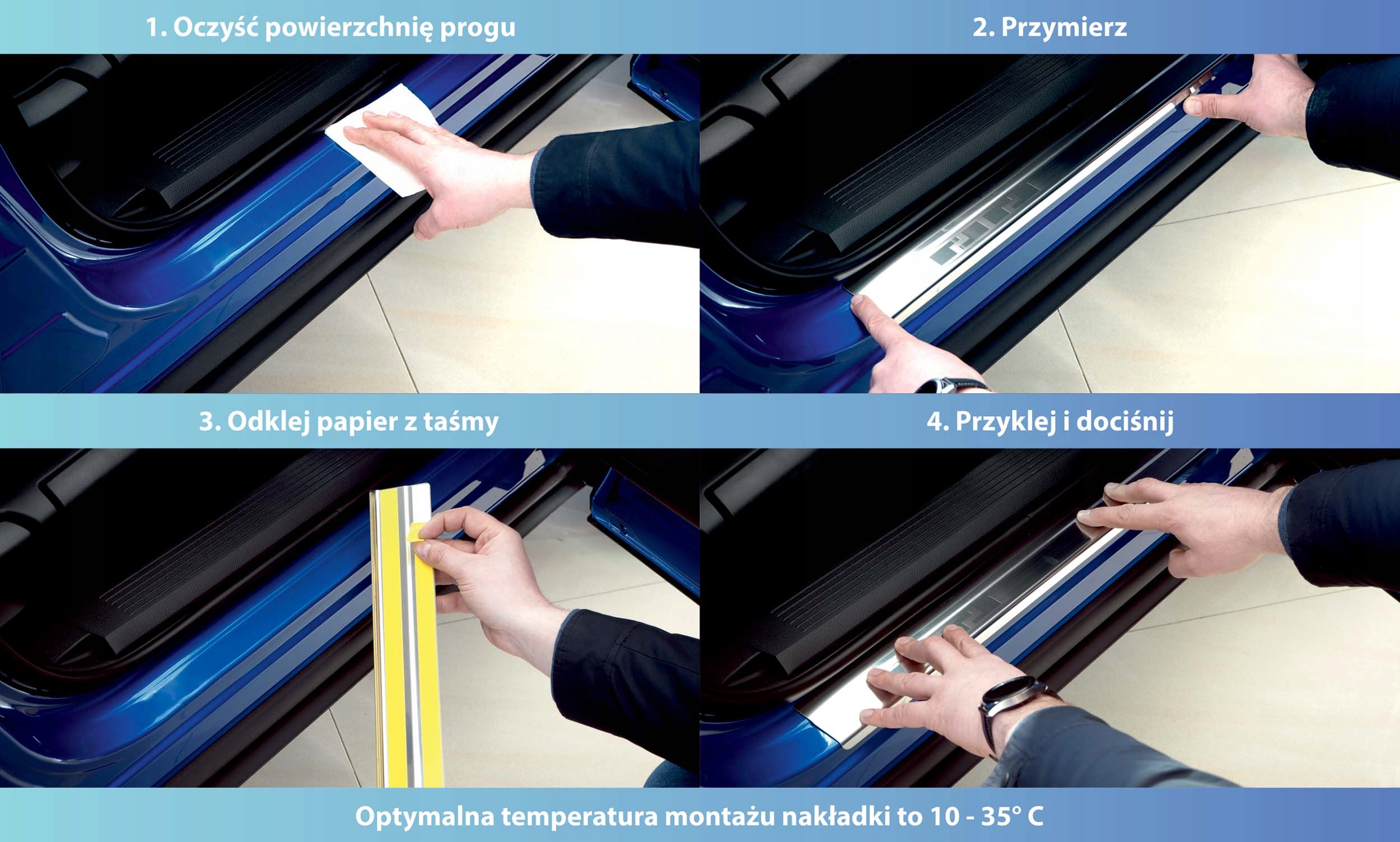 Alu-Frost Covers защищают лак на пороге автомобиля от царапин, и повреждение произошло при включении и выключении. Кроме того, они являются оригинальным и элегантным дополнением к внутренней части каждого автомобиля