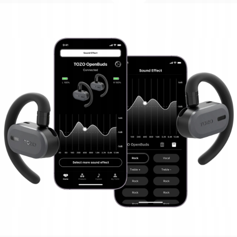 Открытые почки Tozo совместимы с мобильным приложением Tozo для мобильных устройств с Android и iOS. благодаря этому вы можете удобно отрегулировать характеристики звука наушников в свои предпочтения. Программа имеет 16 режимов эквалайзера, отображает уровень заряда наушников и позволяет создавать свои собственные звуковые профили.