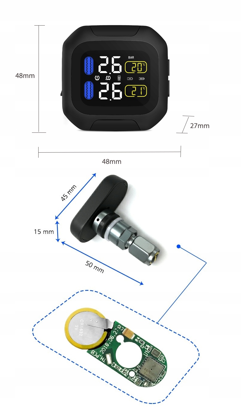 TPMS БЕЗДРОТОВИЙ МОТОЦИКЛ ДАТЧИК ТИСКУ І ТЕМПЕРАТУРИ.
