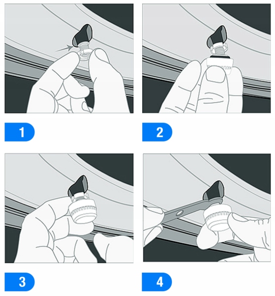После снятия оригинальных колпачков клапанов навинтите противоугонный колпачок из комплекта