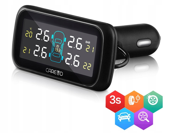 Комплект TPMS повышает вашу безопасность на дороге, отслеживая состояние шин. давления и температуры, модель U903 может отправлять информацию в течение 3 секунд после изменения давления и температуры. Если изменения давления и температуры не резкие, датчики, установленные на клапанах, отправляют информацию раз в 3 минуты.