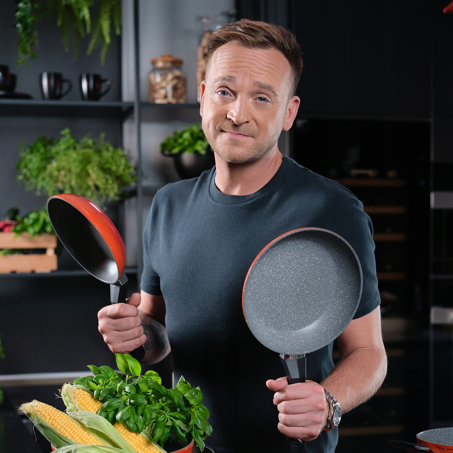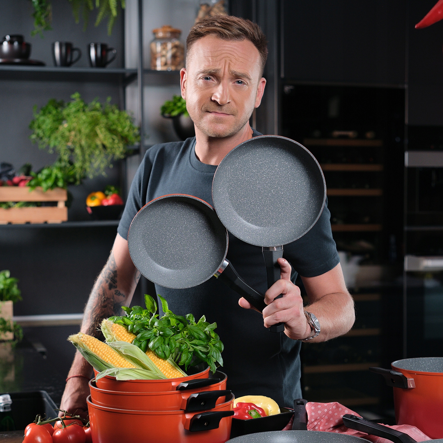 Сковороды Florina Chili, рекомендованные Матеушем Гесслером. Изготовленные из кованого алюминия, они проводят тепло как никто другой. Продукты нагреваются быстро и равномерно, что обеспечивает эффективное обжаривание. Поэтому сковороды станут идеальным выбором для тех, кто часто готовит и ценит экономию времени и энергии. Для приготовления используйте минимальное количество жира. Антипригарное покрытие, используемое внутри, предотвращает прилипание и чрезвычайно легко чистится. О чистке кастрюль можно забыть навсегда.