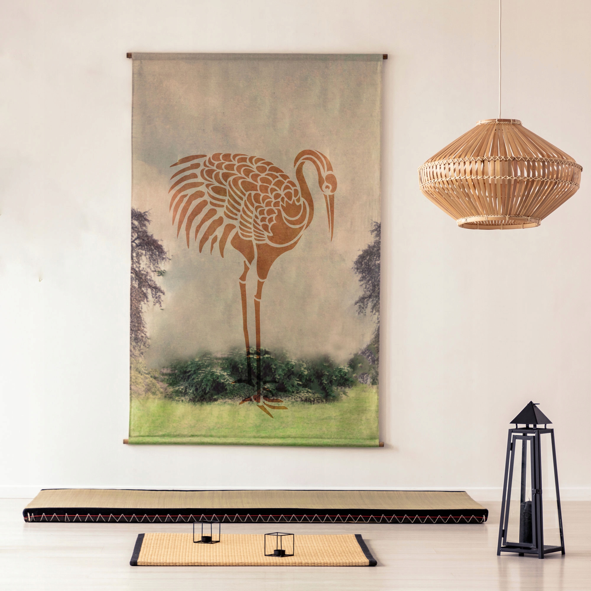 В Восточной Азии редкий дикий маньчжурский журавль считается символом счастья, долголетия и верности. Этот рисунок прекрасно впишется как в классический интерьер, так и в современный минимализм.