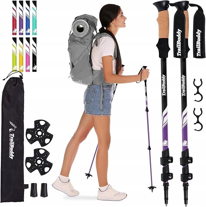 TRAILBUDDY LEKKIE KIJKI TREKKINGOWE SKŁADANE REGULOWANE fiolet
