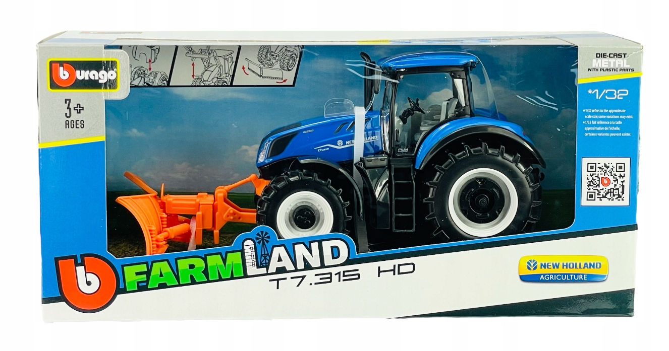 ТРАКТОР BBURAGO NEW HOLLAND T7.315 HD СО Снегоочистителем НОВАЯ МОДЕЛЬ 1:32