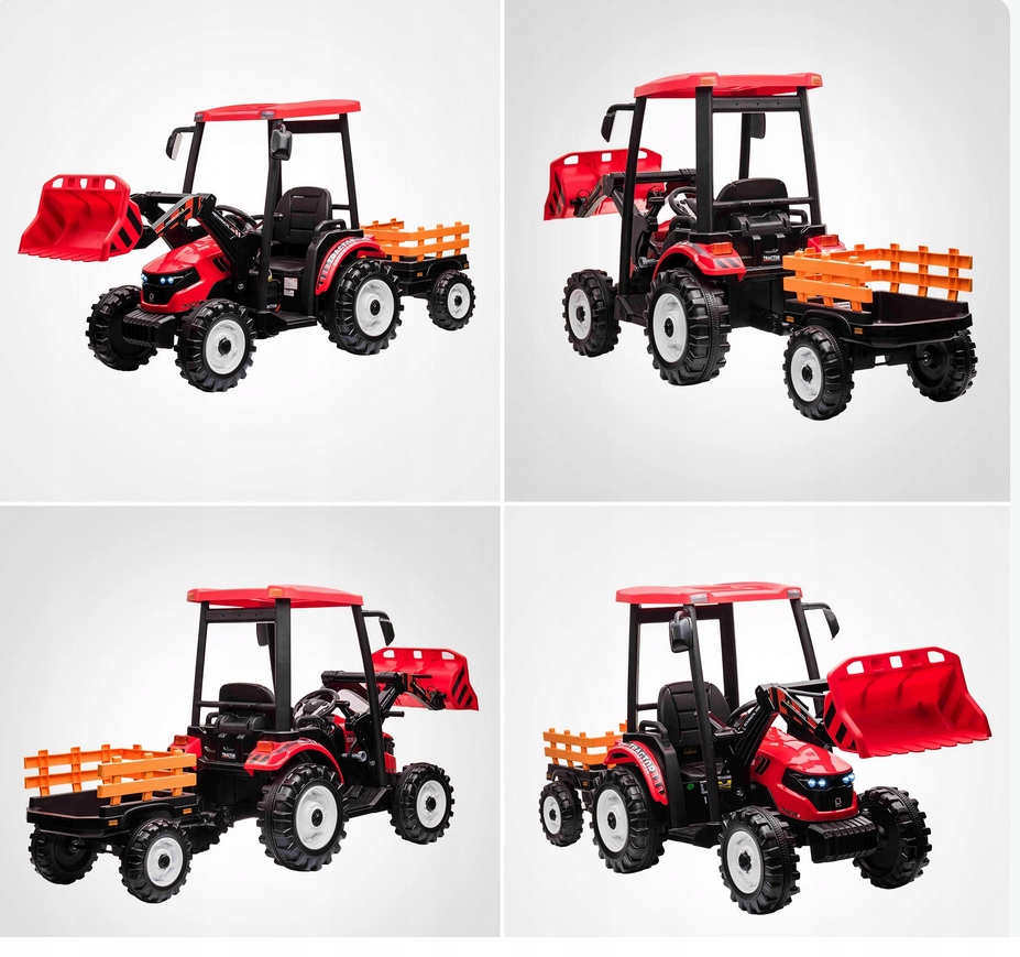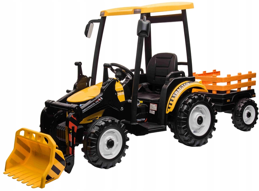 ТРАКТОР 24 В С АККУМУЛЯТОРОМ ДЛЯ ДЕТЕЙ + 2 БОЛЬШИХ ДВИГАТЕЛЯ 24 В 200 Вт + ПРИЦЕП + МЕДЛЕННЫЙ СТАРТ + КОВШ + ПИЛОТ ДЛЯ УПРАВЛЕНИЯ 2.4.G JS3158B