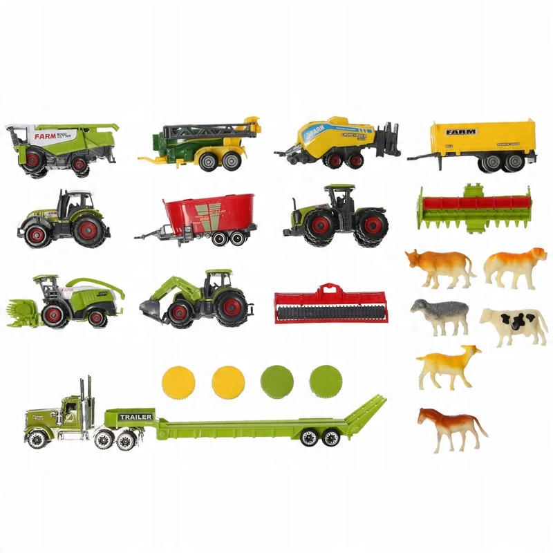 БОЛЬШОЙ НАБОР СЕЛЬСКОХОЗЯЙСТВЕННЫХ МАШИН ТРАКТОРЫ КОМБАЙН + ЖИВОТНЫЕ 23 ЭЛЕМЕНТА