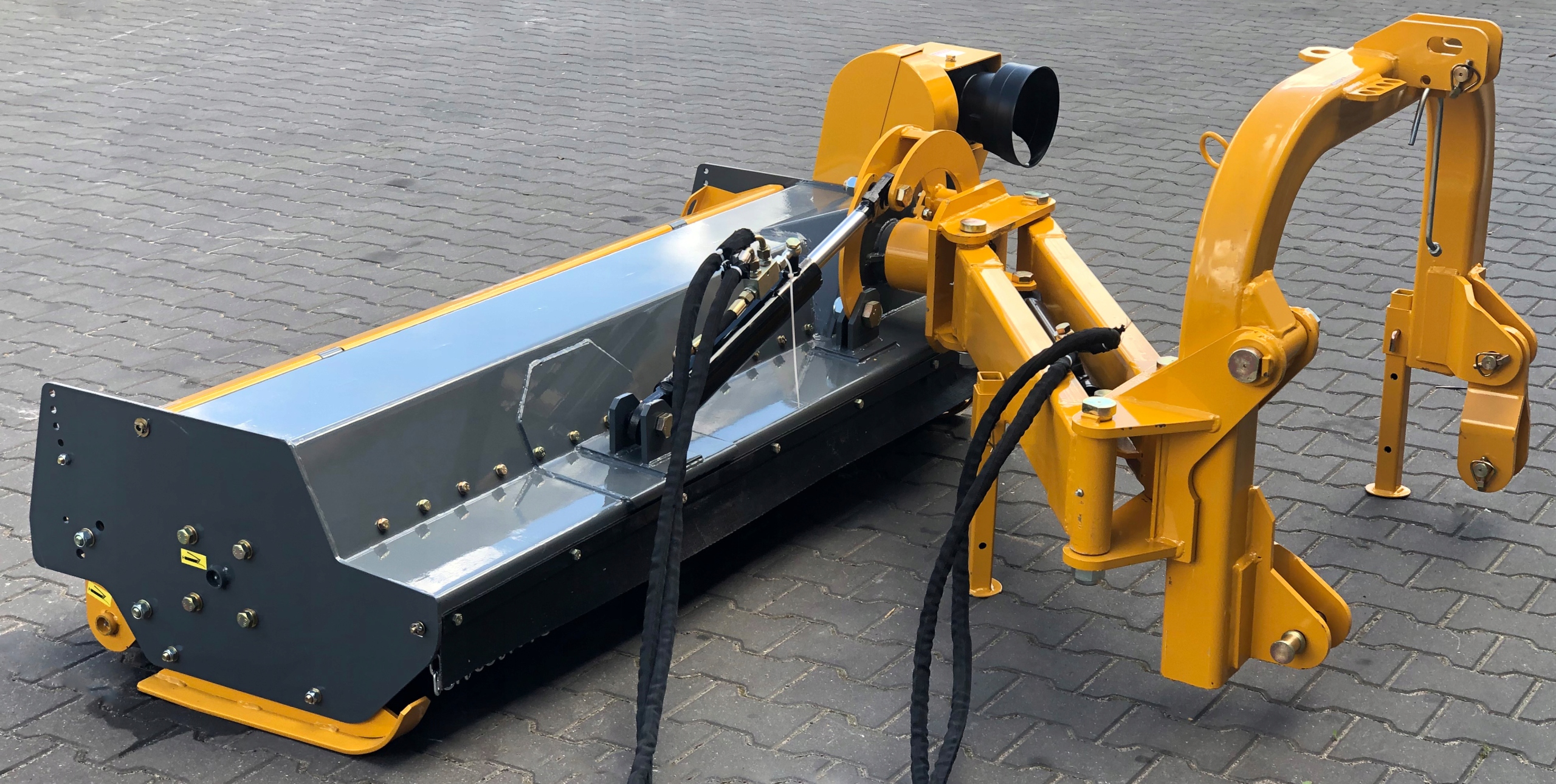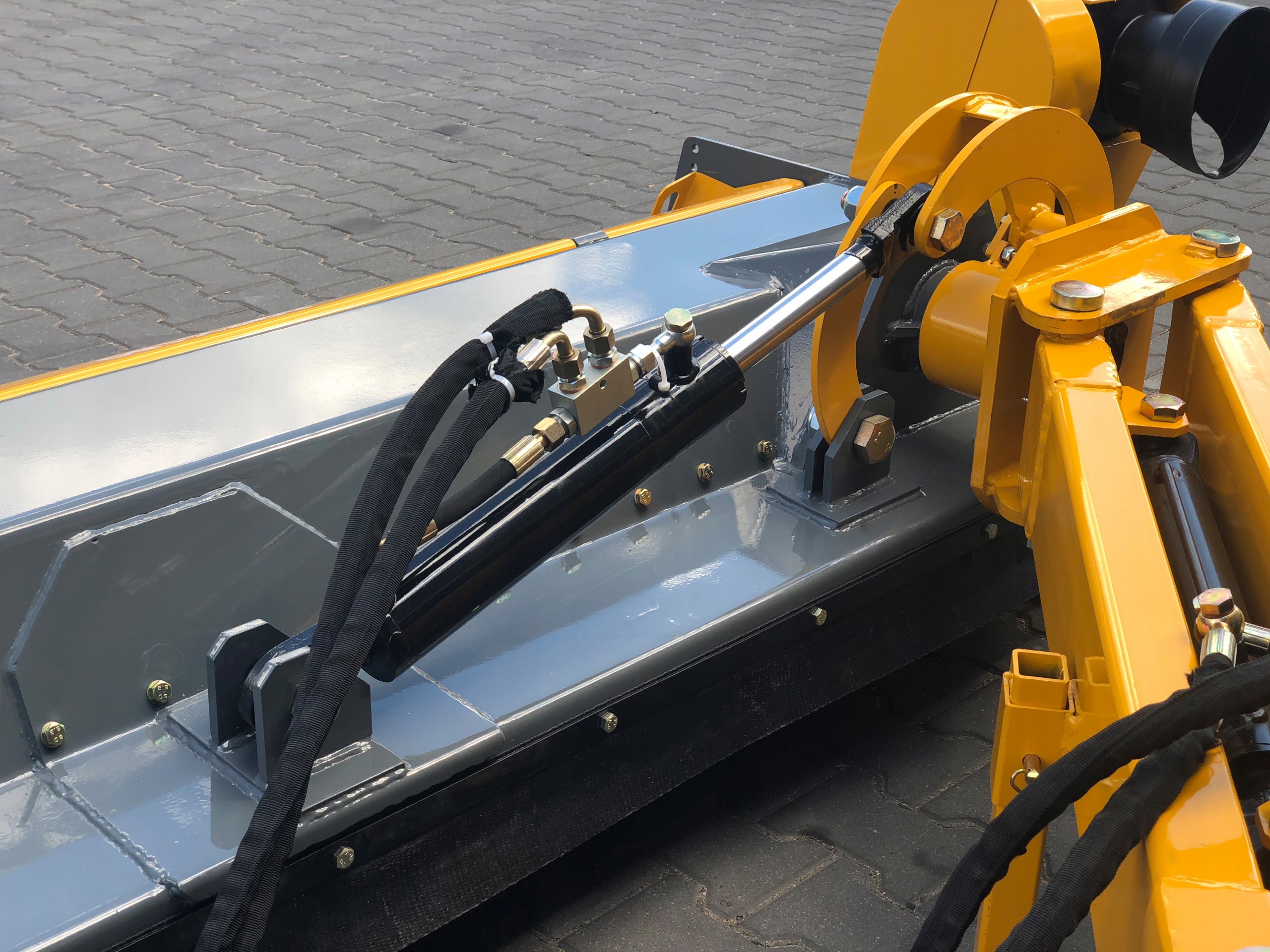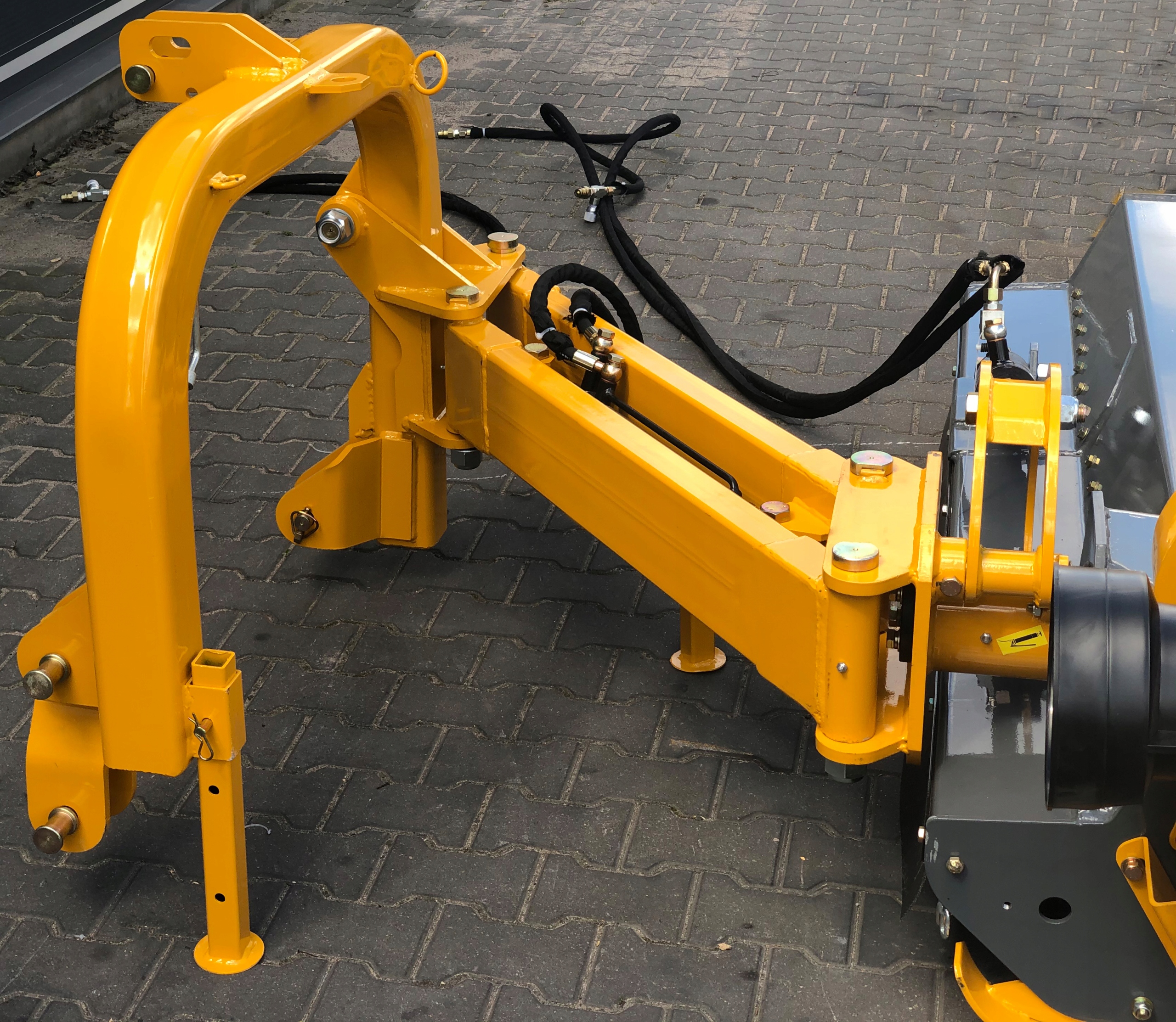 - Регулируемый рычаг позволяет косить непосредственно с трактором или рядом с ним. Рычаг перемещается на 140 см, поэтому мы можем легко косить обочину дороги, где трактор не может проехать.