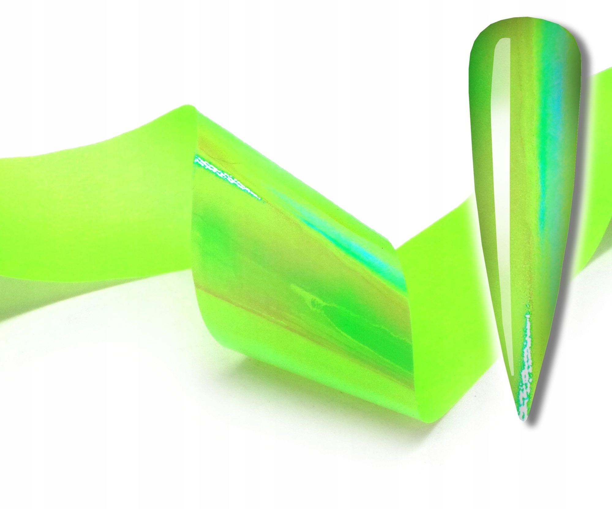 Радужный, Русалочный, Эффект Авроры - Цвет меняется в зависимости от угла освещения и цвета лака, используемого в качестве основы под фольгу.