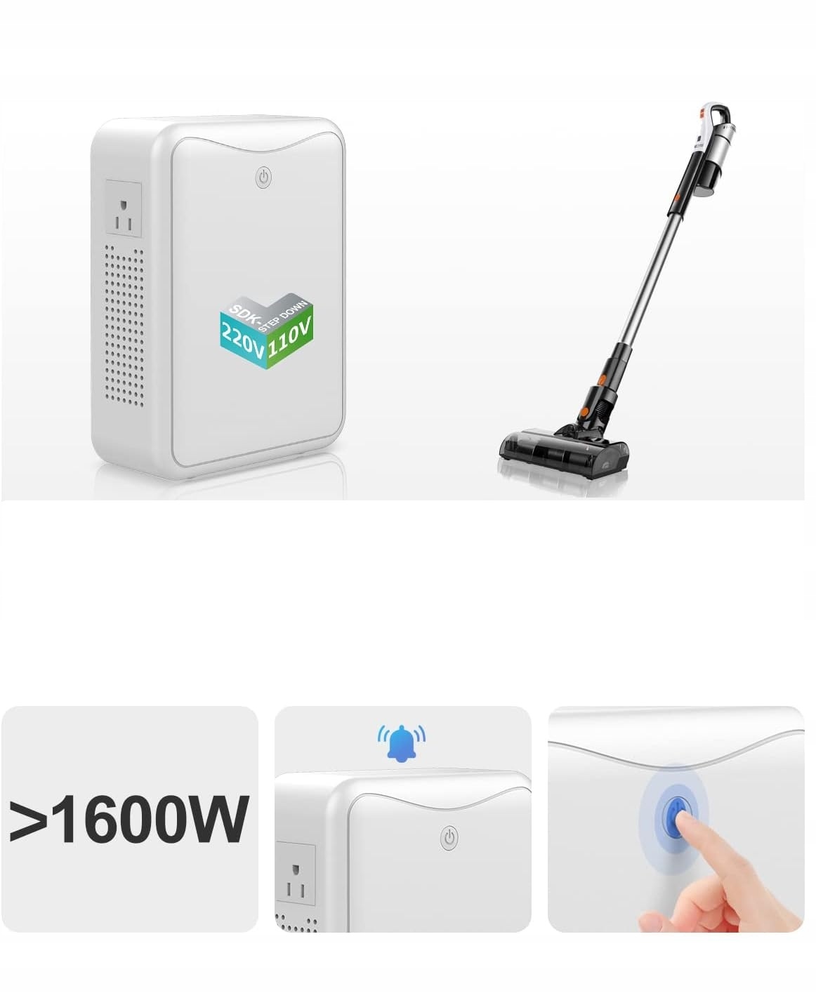 - Идеально подходит для преобразования напряжения от 230 В до 110 В, предназначено для американских устройств.