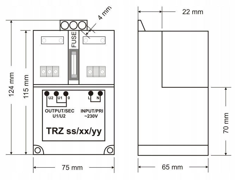 Монтаж: 4 цилиндрических винта (плоская поверхность) или на монтажную рейку TH35/TS35 (DIN)