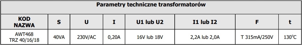 Трансформатор TRZ 40VA/16V/18V AWT468 Pulsar