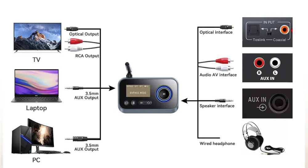 TRANSMITER SYGNAŁU AUDIO PRZEZ AUX/OPT BLUETOOTH ADAPTER NADAJNIK ODBIORNIK