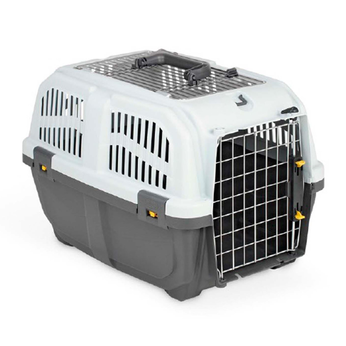 Идеальная переноска для безопасной перевозки кошки или собаки, в том числе во время авиаперелетов, с дополнительным входом сверху. Изготовлен из очень качественного пластика и оснащен металлической решеткой с замком IATA. Этот тип перевозчика принимается большинством авиакомпаний для перевозки животных.