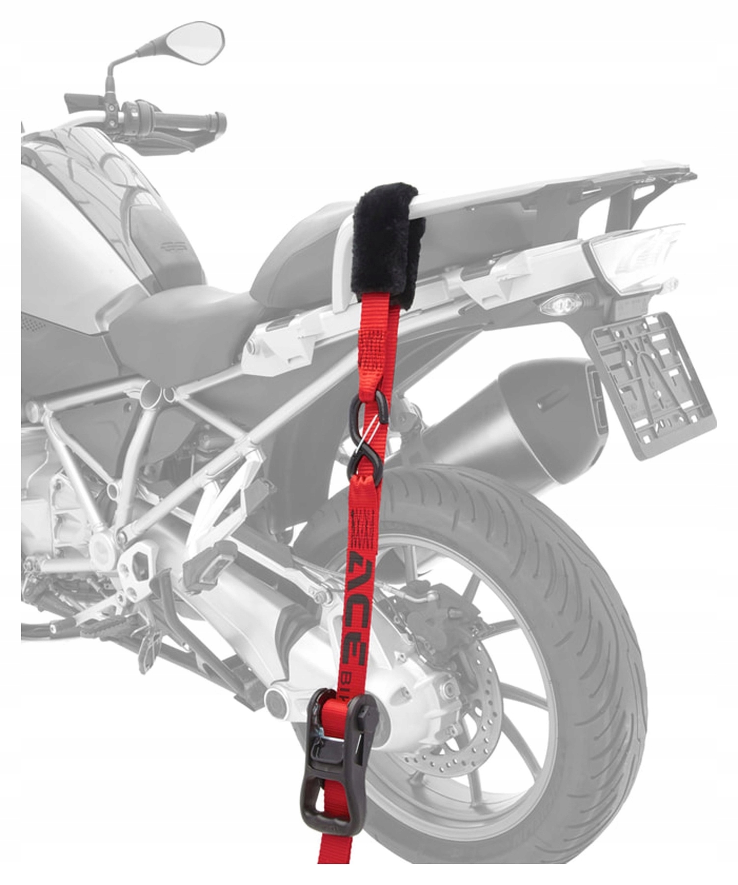 Acebikes предлагает чрезвычайно прочный ремень *Ratchet Premium Deluxe* для перевозки очень тяжелых мотоциклов и крупных тяжелых машин. Он изготовлен из высококачественного полиэстера и оснащен особо высококачественной прочной трещоткой. Длинный черно-красный пояс имеет длину около 200 см. Его петлевая часть также покрыта кусочком искусственной овечьей шерсти – для защиты мотоцикла. Обладая грузоподъемностью 900 даН и шириной 38 мм, велосипеды Acebikes *Ratchet Premium Deluxe* чрезвычайно устойчивы. Всего за несколько простых шагов крепежный ремень надевается и надежно и прочно фиксируется с помощью оцинкованной храповой системы. А поскольку во время транспортировки всегда лучше закрепить левую и правую стороны, велосипеды Acebikes *Ratchet Premium Deluxe* доступны в наборе из 2 штук с практичной сумкой.