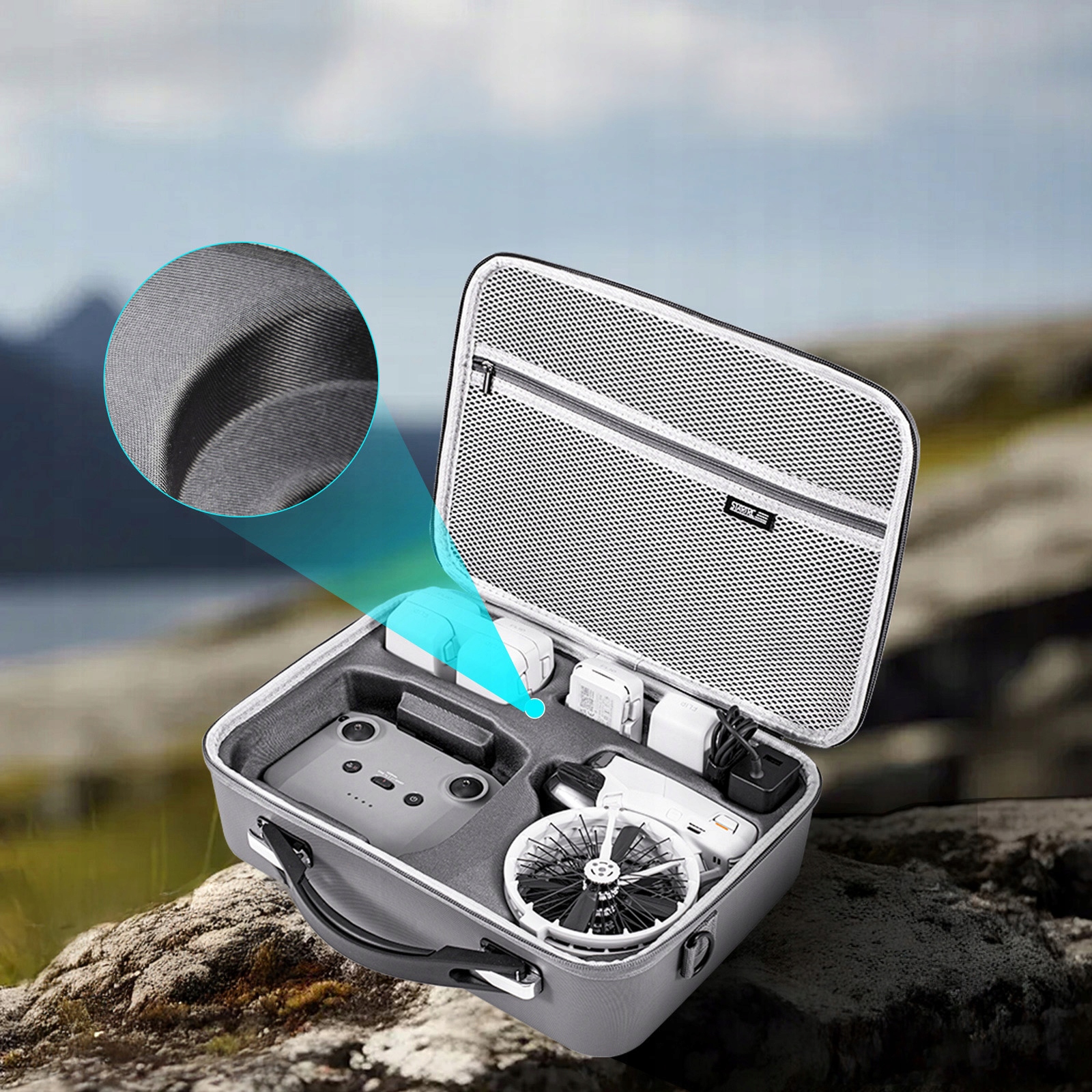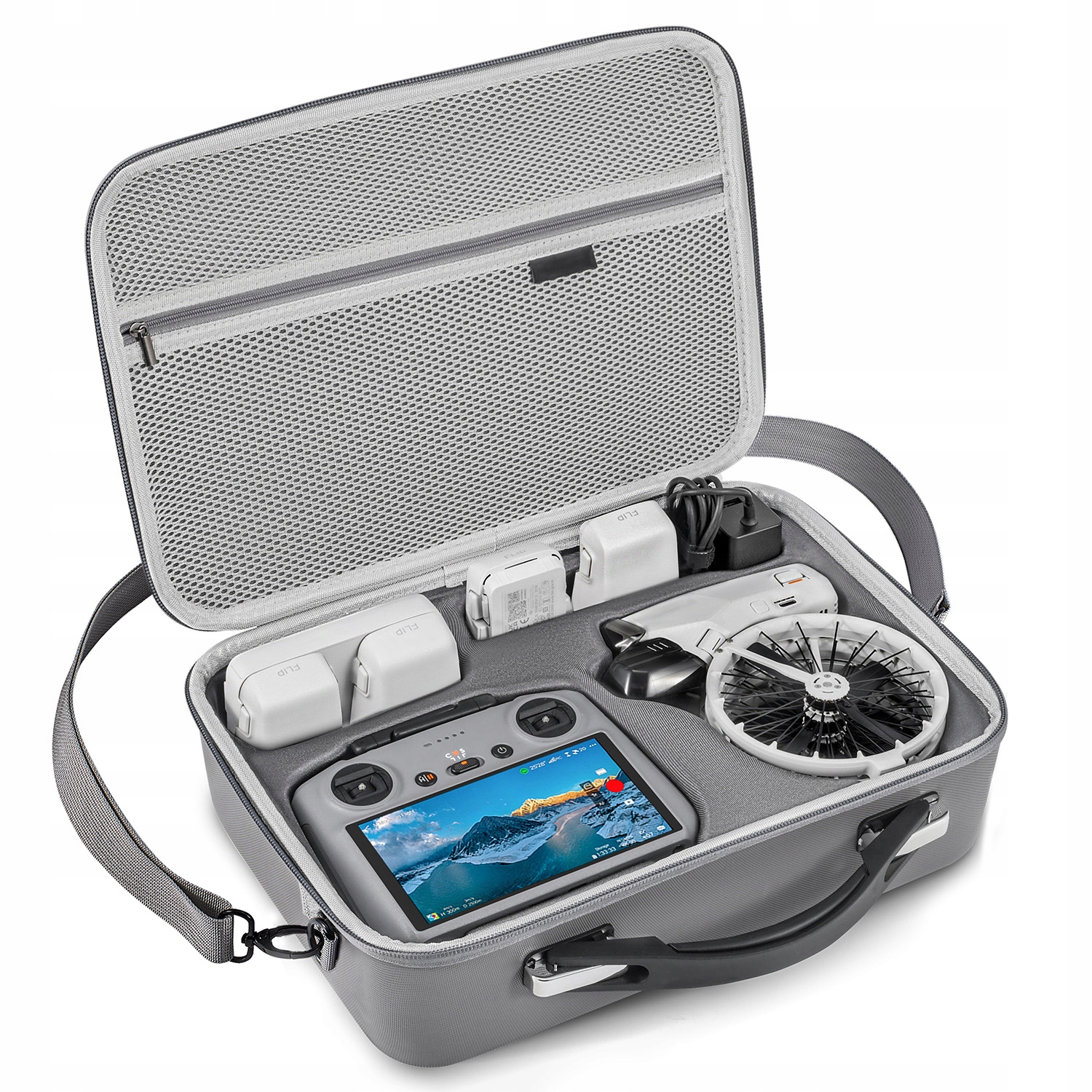 Формированный основной отсек был разработан на основе фактических размеров DJI Flip, который гарантирует идеальное совпадение . Дополнительный сетчатый карман под крышкой позволяет хранить кабели и небольшие аксессуары без риска повреждения беспилотника