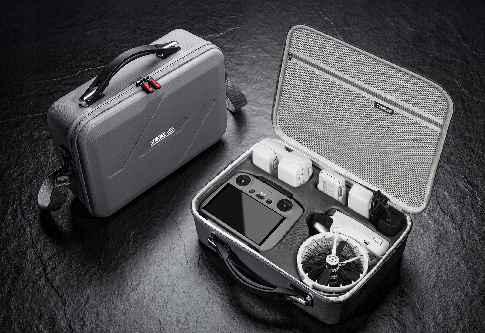 startrc для переноски сумки -это компактная сумка , которая будет разместить не только контроллер DJI и RC 2/RC-N3, но и батареи , зарядный концентратор, кабели, пропеллеры, ND и другие необходимые аккумуляторы. выделенные отсеки устраняют риск движения оборудования, обеспечивая защиту от царапин и шоков .