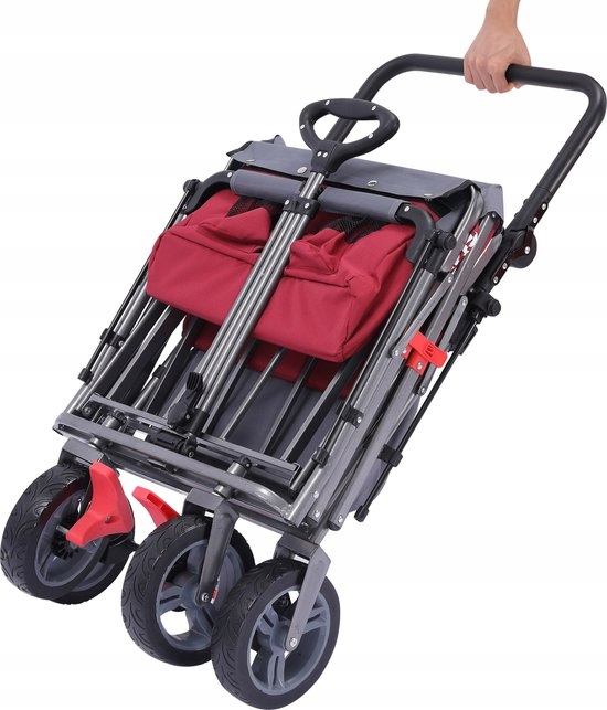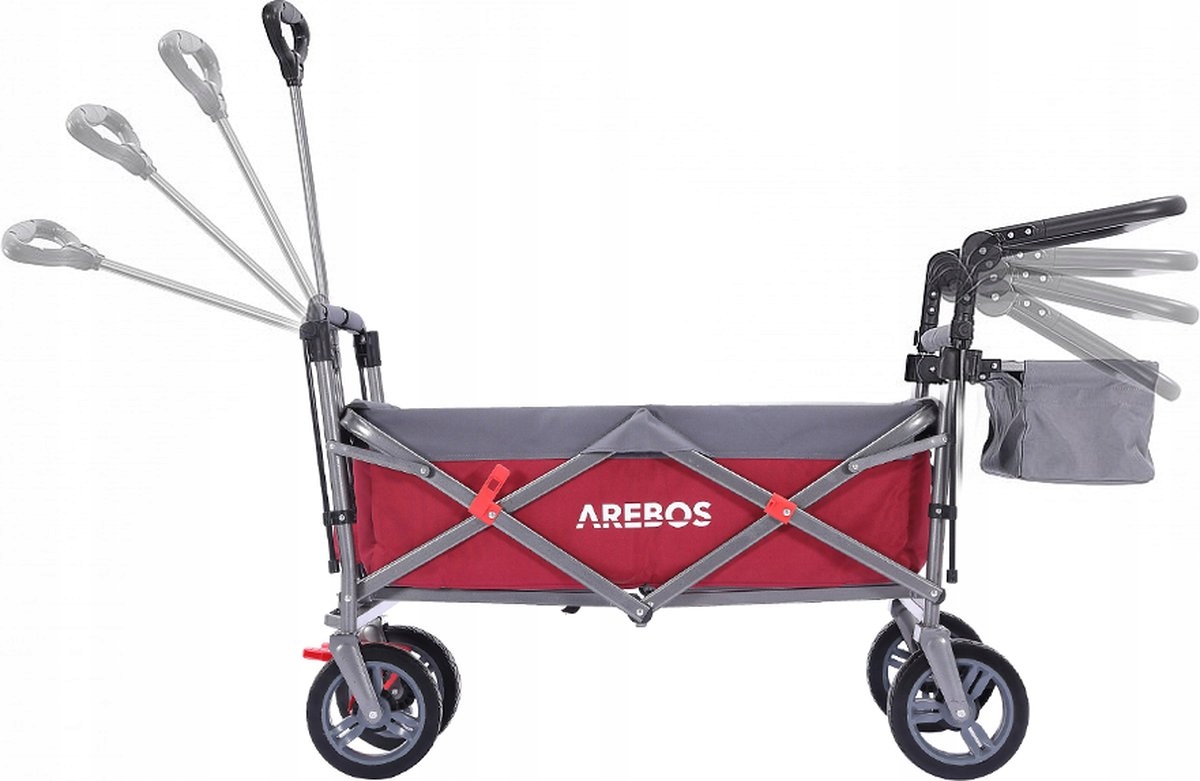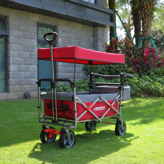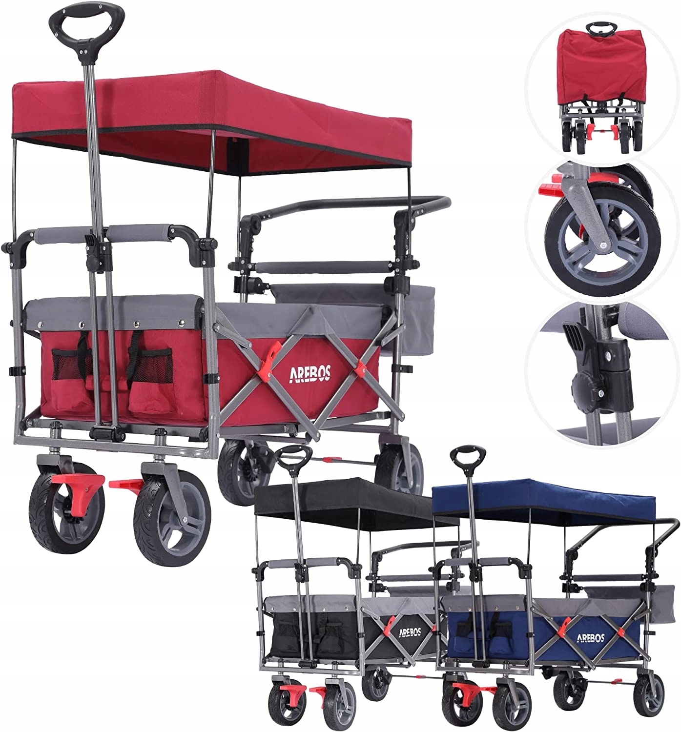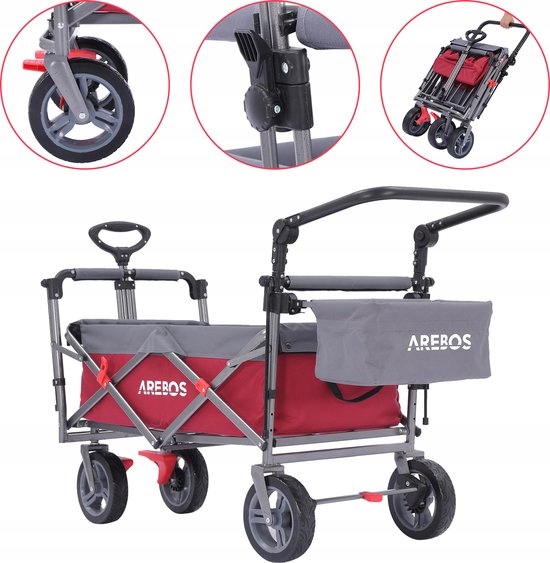 Складная ручная тележка AREBOS Premium - Резиновые шины - тележка с крышей - до 100 кг - с крышей Темно-красный/серый
