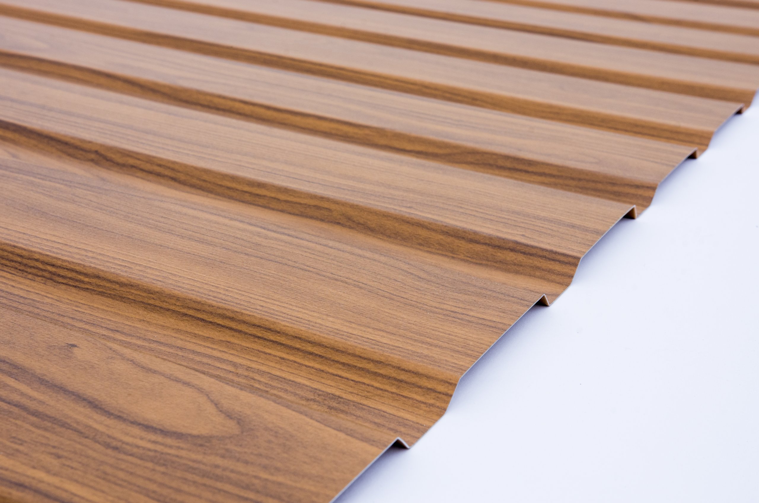 Трапециевидный лист Т-7 цвета Золотой Дуб, так называемый стальной софит.