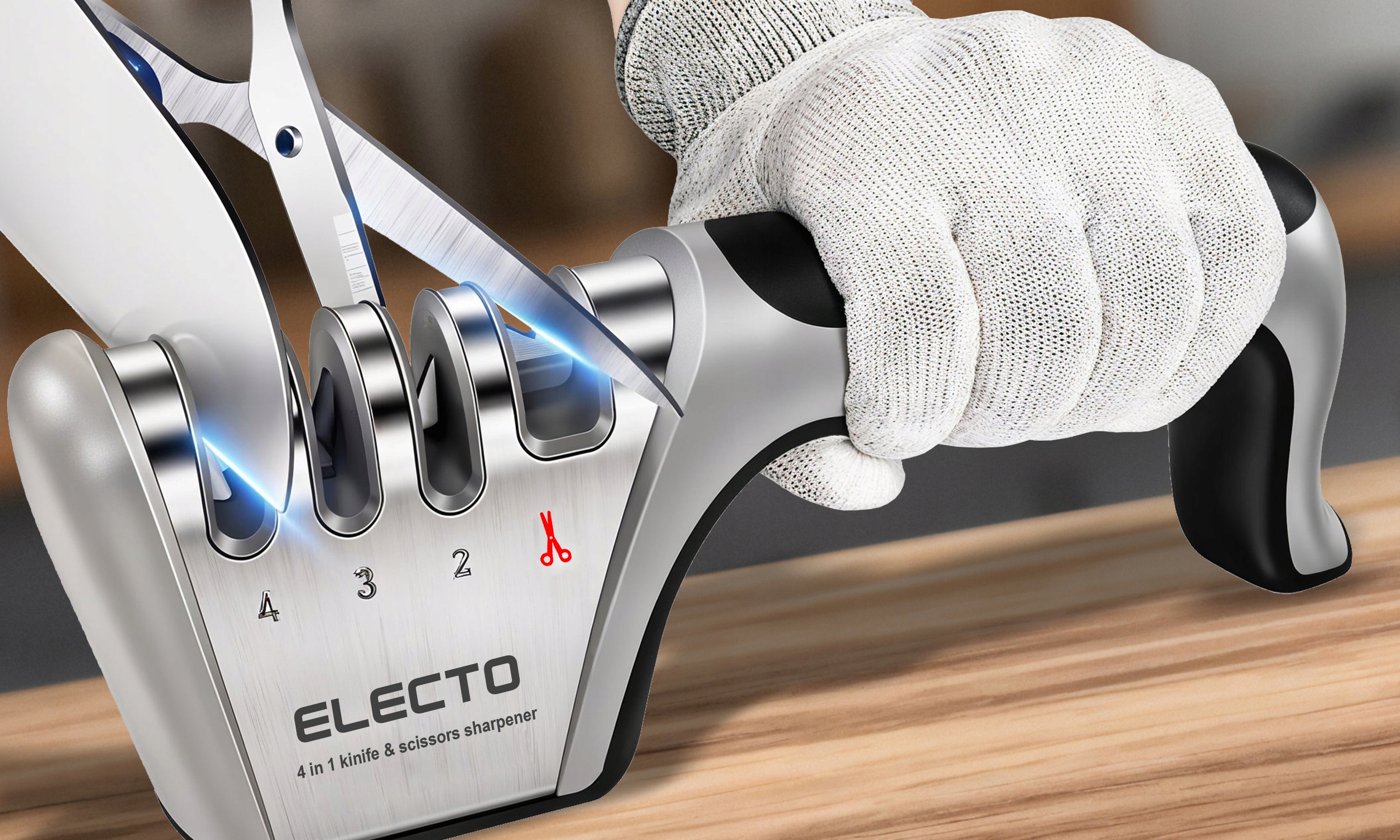 - Точилка Electo 4в1 создана для того, чтобы каждый - независимо от доминирующей руки - мог безопасно и комфортно затачивать ножи и ножницы.