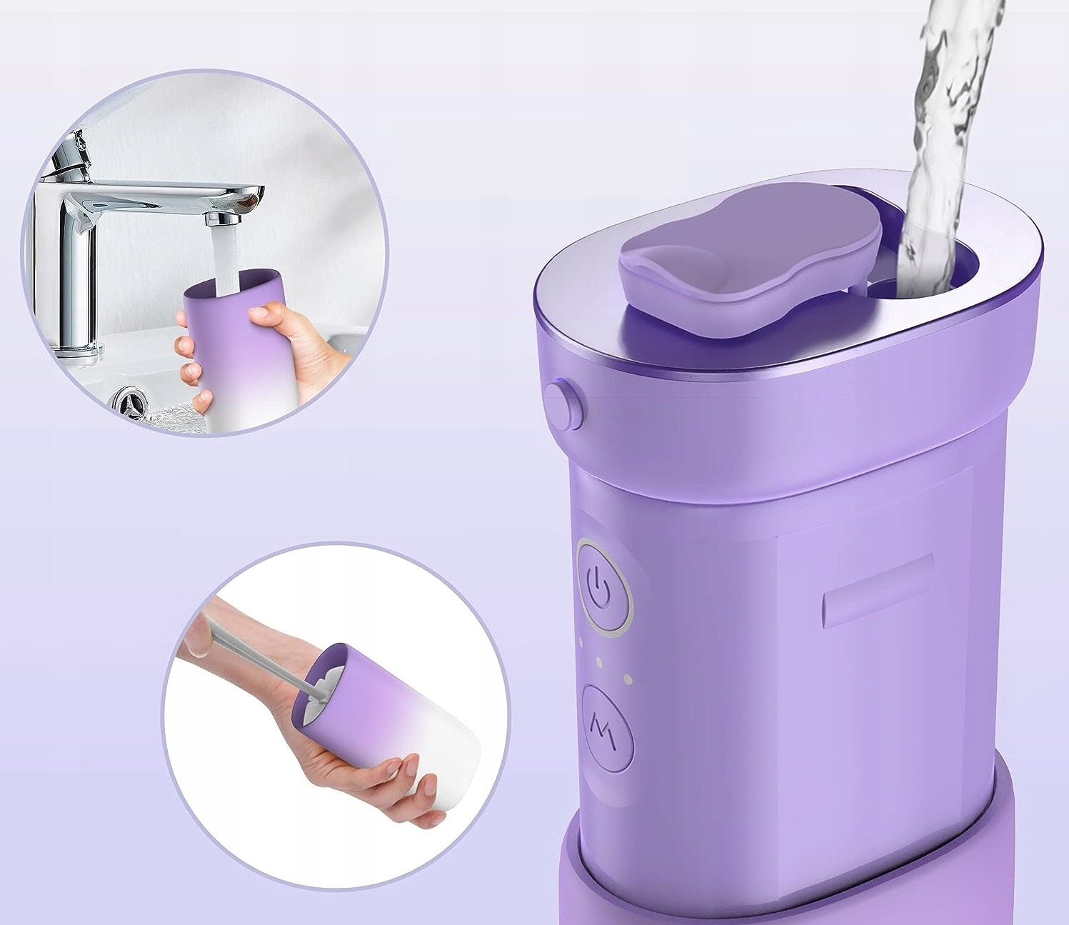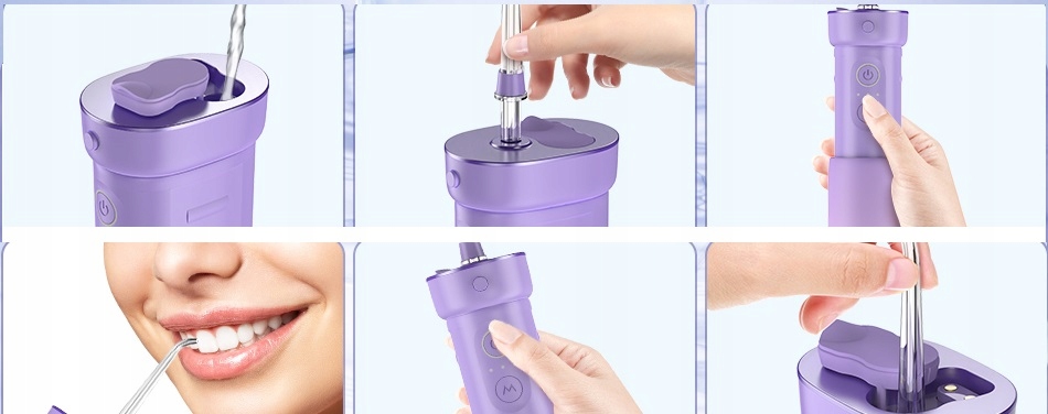 Портативные губы оснащен 2-минутным таймером, памятью передачи, функцией напоминания аккумулятора и тремя режимами: "Сделай сам" , деликатный и чистка , которые могут соответствовать требованиям гигиены полости рта большинства людей. DIY -режим означает, что вы можете настроить свой собственный режим (30 фунтов на квадратный дюйм -120 фунтов на квадратный дюйм). 2 Стандартные сопла, 1 устройство для очистки языка, 1 челюстная ортопедическая форсунка, 1 насадка для резинки