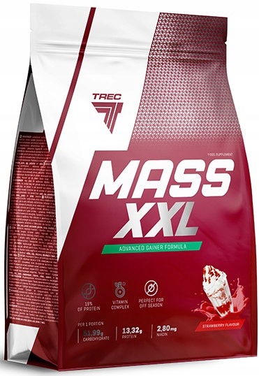 Trec Mass XXL — высшаяуглеводно-белковая добавка типа гейнер. Предназначен для спортсменов, которые хотят восполнить дефицит питательных веществ, а также для людей, которым трудно набрать вес.