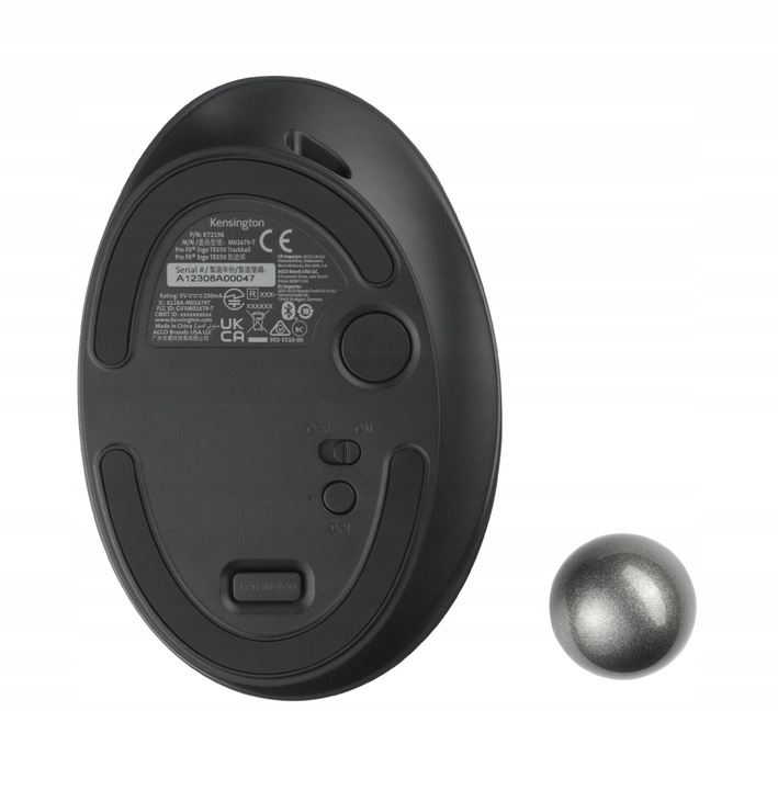Трекбол TB550 оснащен перезаряжаемой батареей, колесом прокрутки 4D и запатентованной системой удлинения шарика, что упрощает очистку.