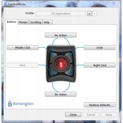 - Бесплатное программное обеспечение TrackballWorks позволяет программировать 2 кнопки, курсор и скорость прокрутки.