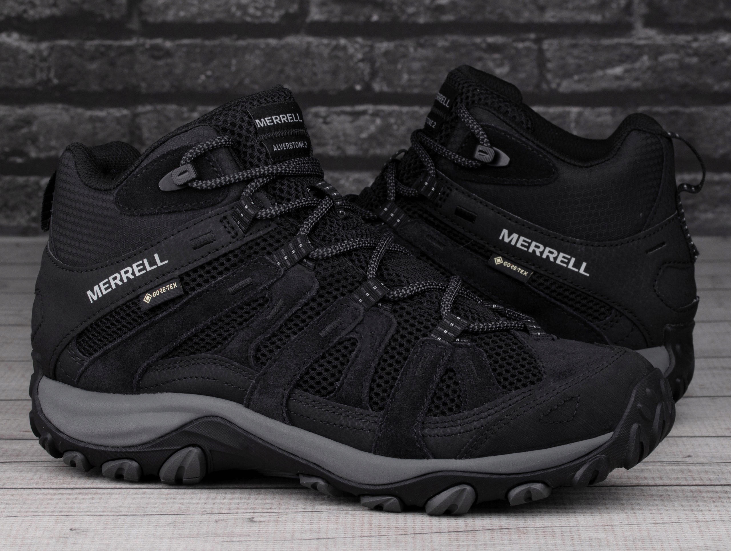 MERRELL ALVERSTONE MID GTX GORE-TEX — обувь для любителей пеших прогулок и треккинга. Он имеет глубокий протектор с плотно вставленными шипами M-Select™ GRIP, подушкой Air Cushion и мембраной Gore-tex. Идеально профилированная подошва обеспечивает комфорт и удобство при движении.