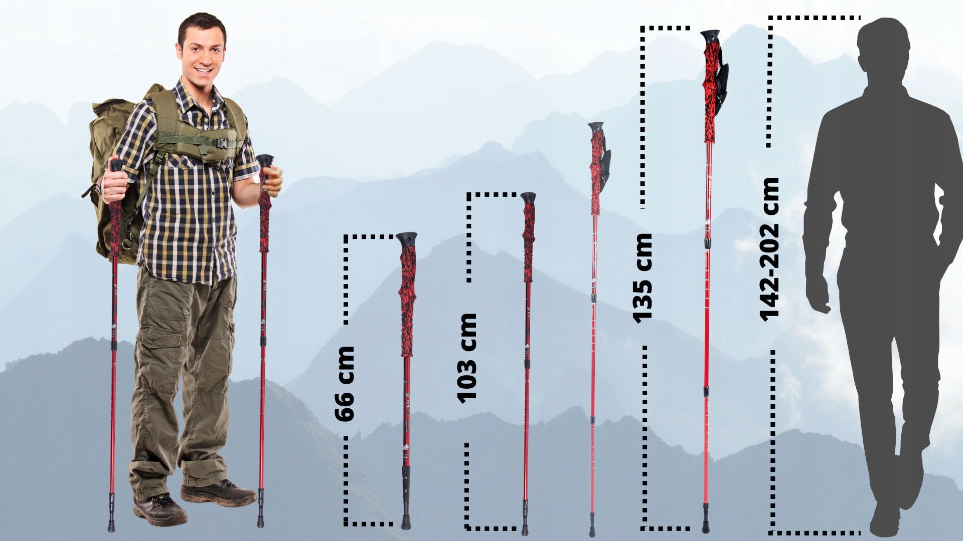 - ✅Благодаря телескопической конструкции палок их можно регулировать в диапазоне от 66 до 135 см. Это означает, что палки подойдут любому человеку ростом от 142 до 202 см.