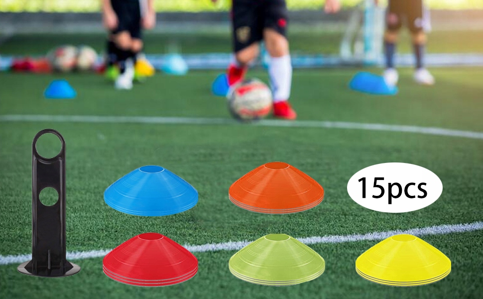 ⚽ 【Удобное хранение】 Благодаря стойке для хранения комплект маркировочных колпачков можно складывать на стойку, его легко хранить и использовать, он легкий и удобный в переноске.