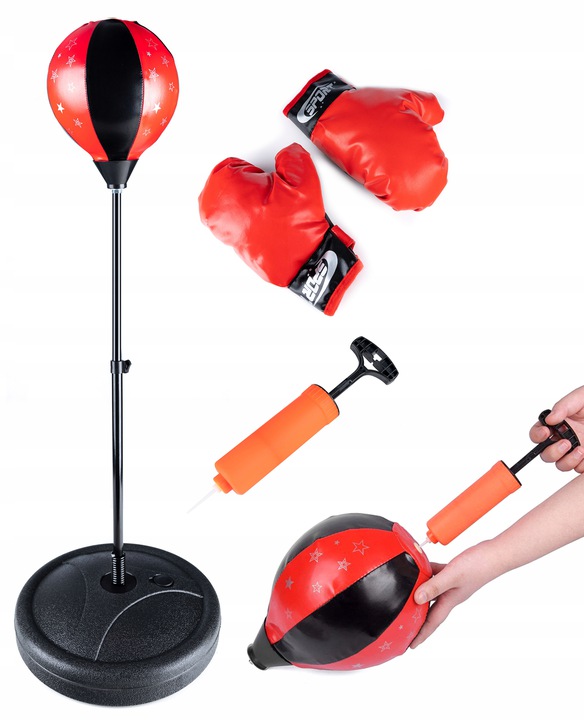 Состоит из подпружиненного боксерского мешка и перчаток. Груша установлена на стальной стреле. В комплект входят перчатки универсального размера, подходящие для детской руки. Перчатки имеют амортизирующий слой на кулаке. Боксерская груша надута. В комплект также входит набор шурупов, шайб и элементов, необходимых для его сборки.