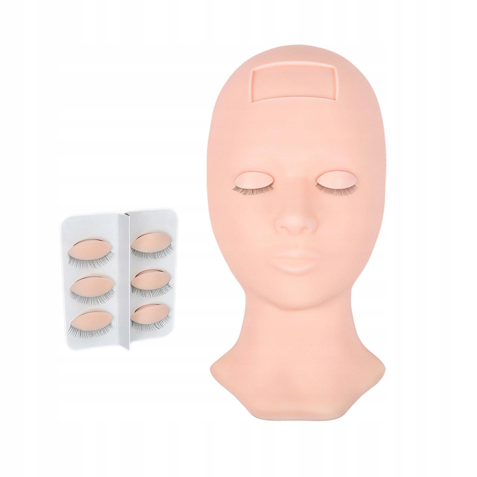 Голова манекена с 3 сменными веками, которые помогут художникам практиковаться в одновременном наклеивании ресниц разных типов.