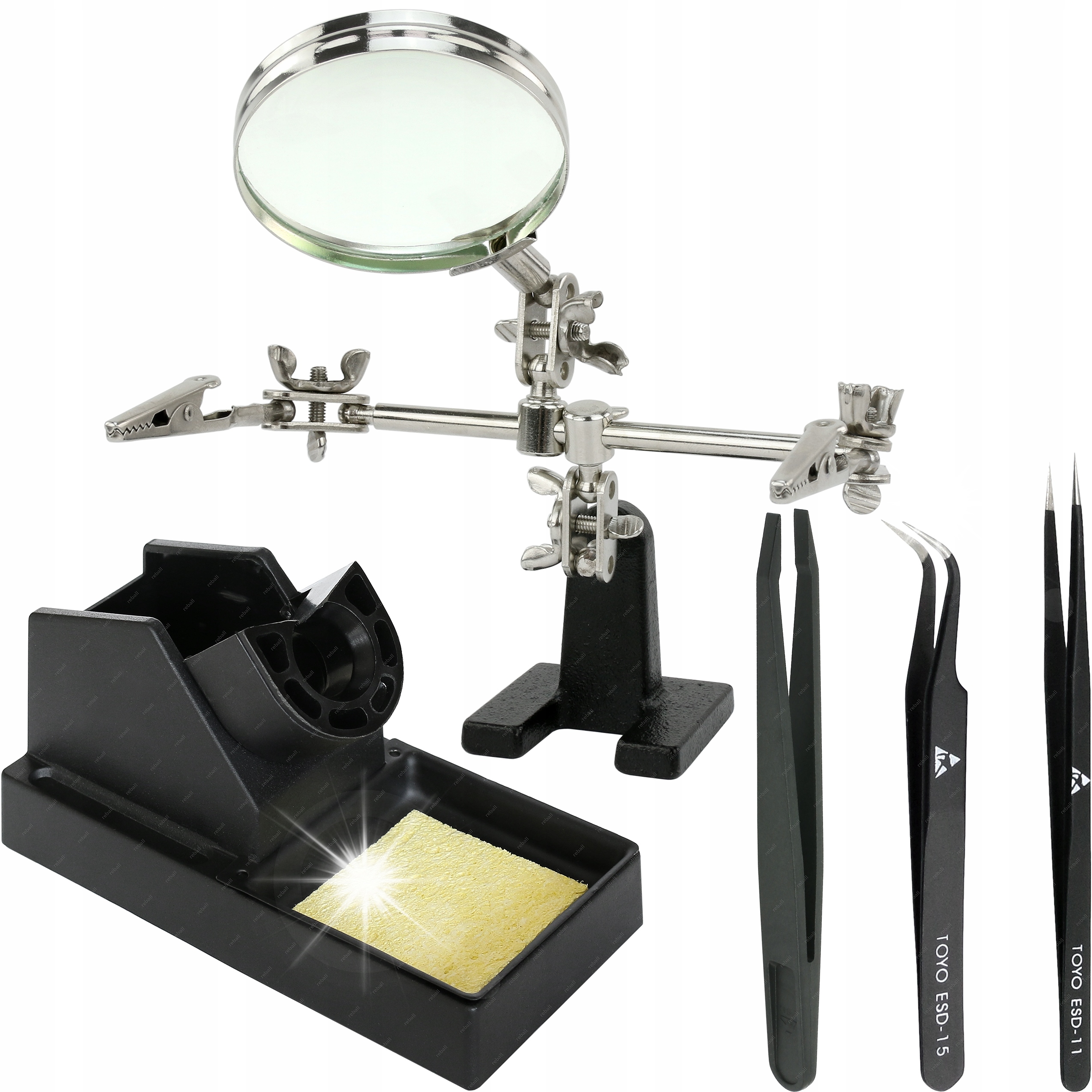 ТРЕТЬЯ РУКА С УВЕЛИЧИВАЮЩИМИ ЗАЖИМАМИ «КРОКОДИЛ» + НАБОР ESD ДВАЖДЫ МОЩНАЯ ПОДСТАВКА ДЛЯ ПАЯЛЬНИКА