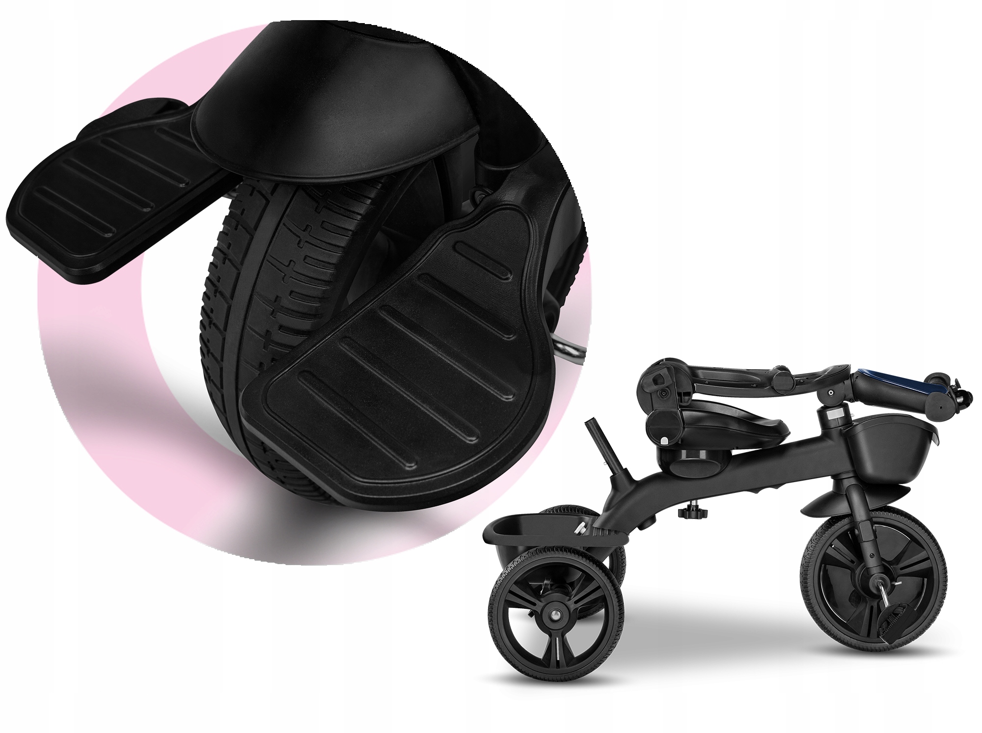 ✔ Подставка для ног – для самых маленьких, которые еще не могут дотянуться до педалей. После поворота сиденья край корзины служит подставкой для ног.