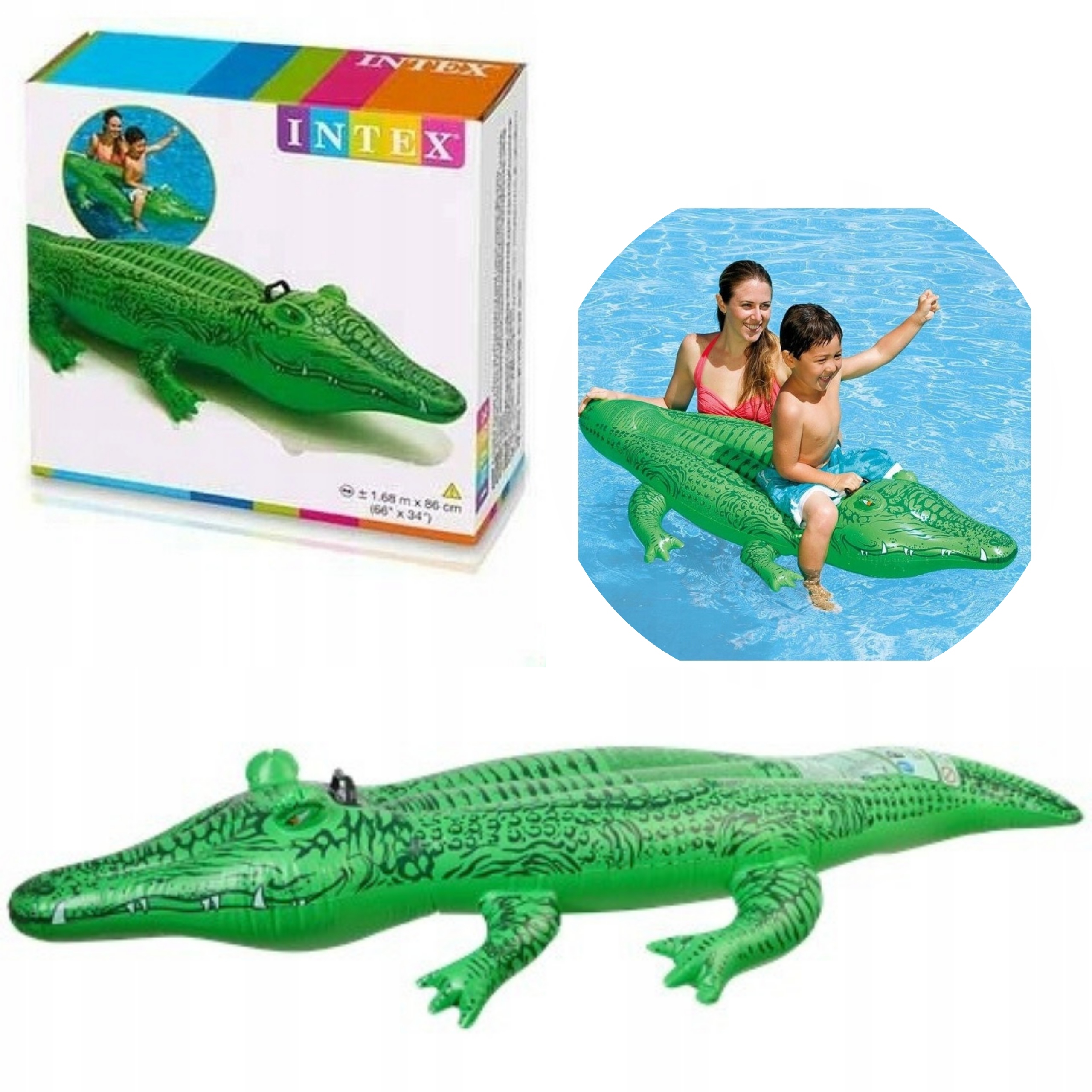 Надуваемый крокодиловый матрас для детей Intex. Бассейн в саду сама по себе является достопримечательностью, но известно, что самый молодой скучный все быстро. Поэтому дайте своему ребенку надувный аллигатор, который обеспечит новые положительные впечатления. Игрушка также идеально подходит для праздничной поездки в море. Это фантастическое надувное животное действительно впечатляет и предлагает самые молодые одинаково впечатляющие развлечения.