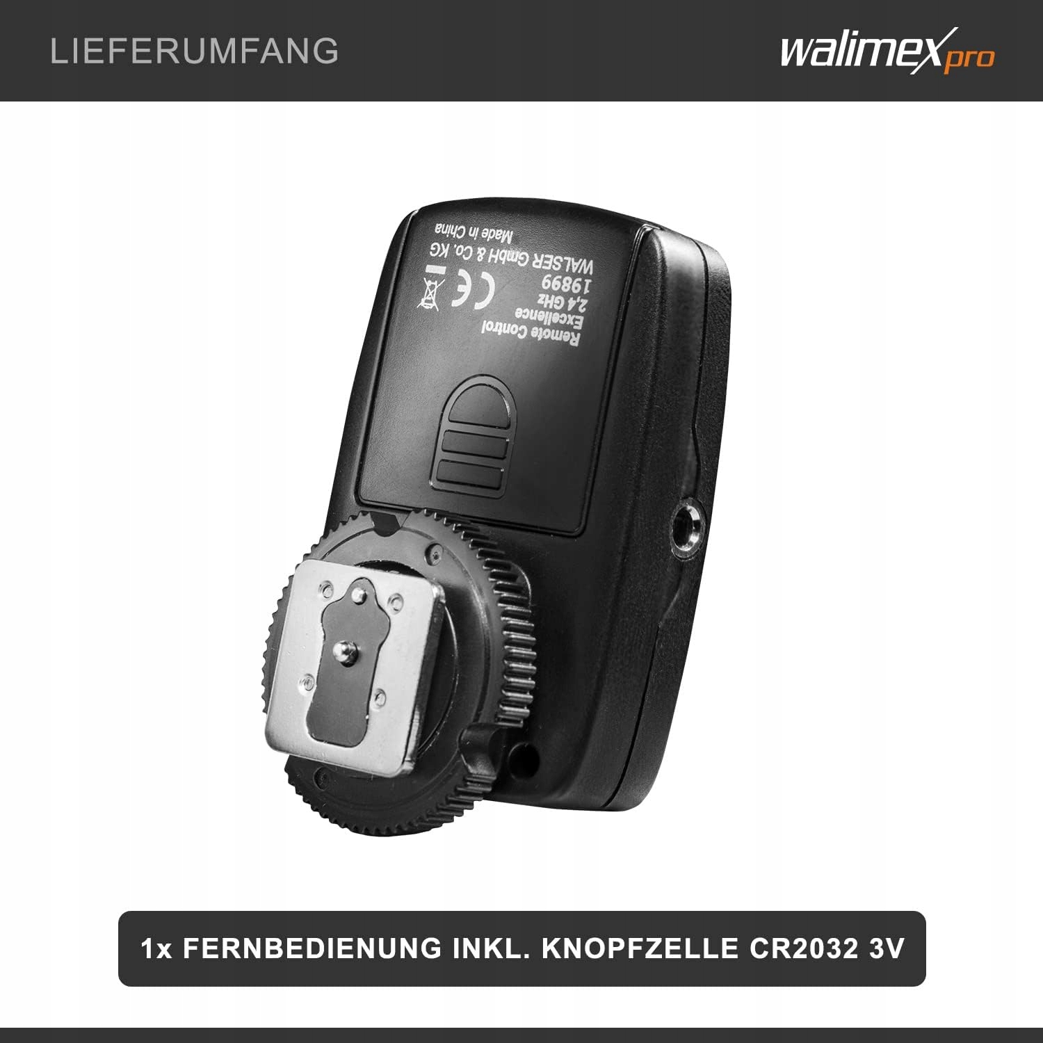 16-канальный радиотриггер для ламп-вспышек Walimex Pro VE и VC Excellence, Walimex Pro Newcomer обеспечивает удобное беспроводное управление студийной лампой на расстоянии до 30 метров. Правильный приемник для этой серии вспышек уже встроен во вспышку. С помощью триггера вы можете выполнить все настройки, такие как пилотный свет или мощность вспышки, чтобы обеспечить комфортную работу. Это делает триггер особенно практичным при использовании систем потолочных направляющих. Вы можете настроить и контролировать до четырех групп. Вспышку можно активировать центральным контактом.