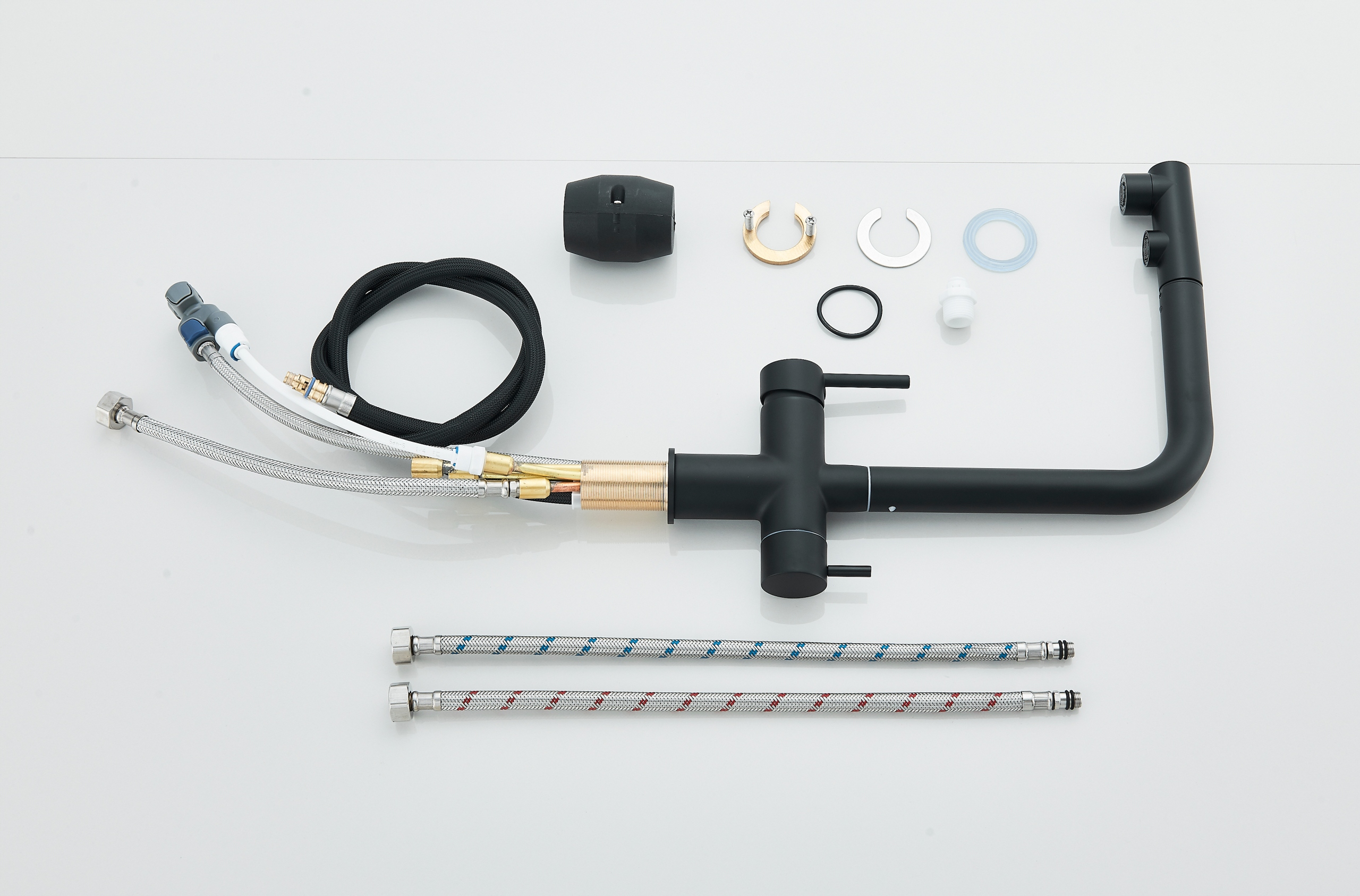 Создан для максимальной функциональности и эстетики. Наш трехходовой смеситель для кухни — это современное решение, позволяющее использовать холодную, горячую и фильтрованную воду из одного элегантного крана. Кроме того, выдвижной излив обеспечивает удобство при повседневном использовании. Благодаря этому инновационному смесителю кухонная деятельность становится проще, а ваша кухня приобретает современный акцент.