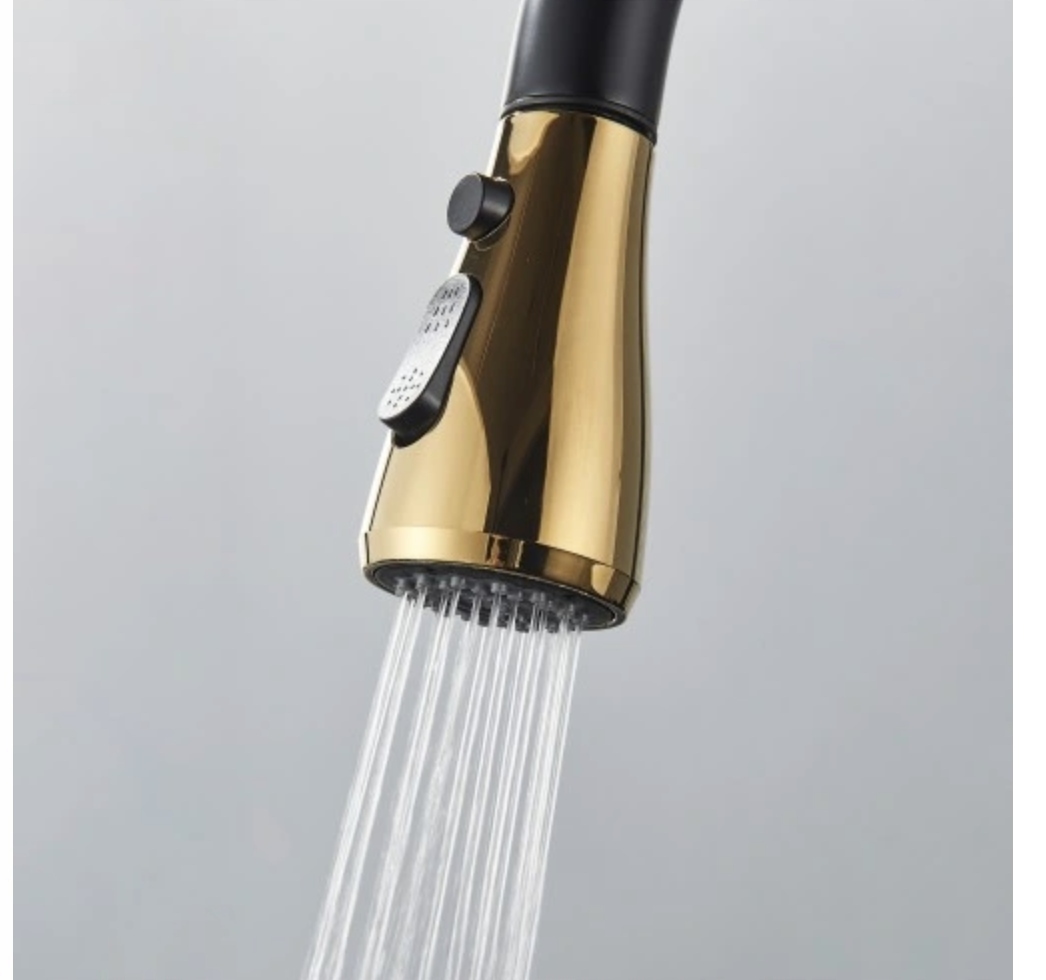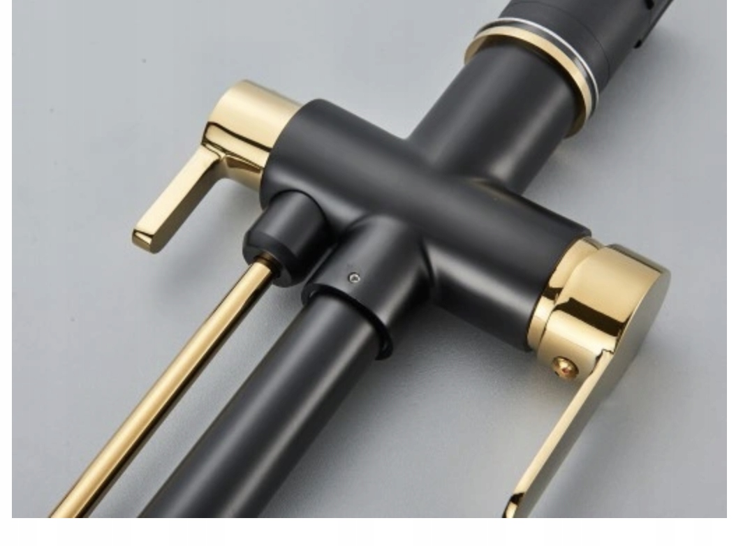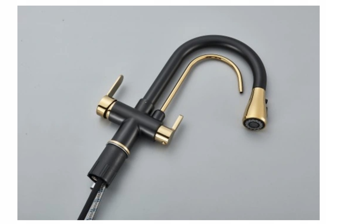 ТРЕХХОДОВОЙ КУХОННЫЙ КРАН, ФИЛЬТР, ВЫДВИЖНОЙ НОСИК, ЧЕРНОЕ ЗОЛОТО
