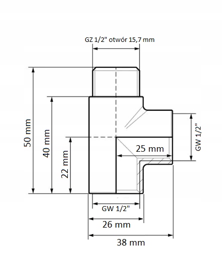 Тройник для электронагревателя GW ½” x GW ½” x GZ ½”