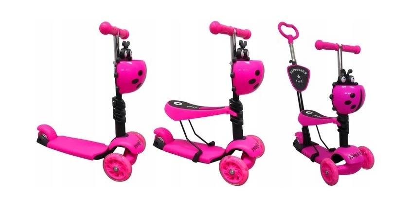 ТРЕХКОЛЕСНЫЙ БАЛАНСИРОВОЧНЫЙ СКУТЕР BIEDRONKA 5в1 LED РОЗОВЫЙ