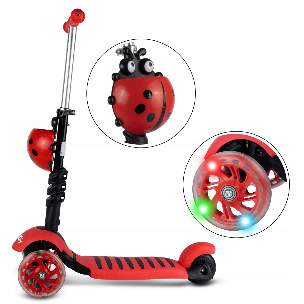 ТРЕХКОЛЕСНЫЙ ДЕТСКИЙ САМОКАТ, СБАЛАНСИРОВАННЫЙ, ПОДСВЕТКА КОЛЕС, LED BIEDRONKA