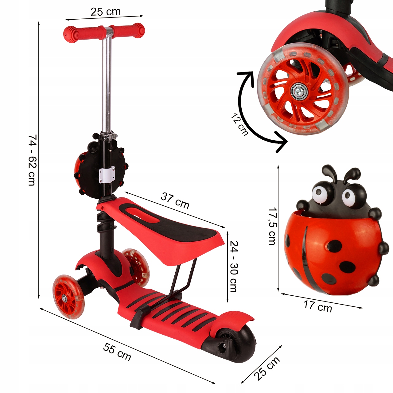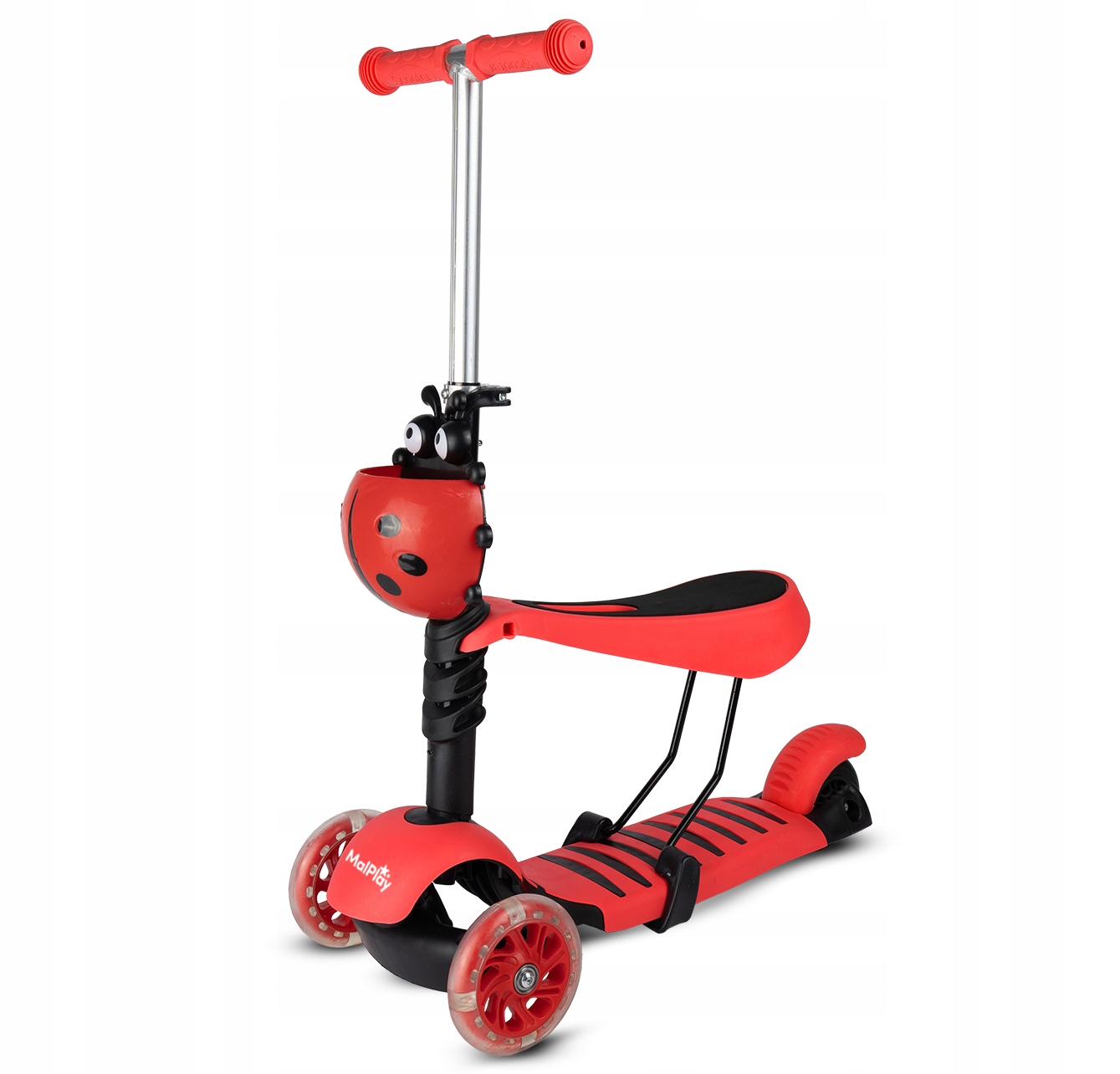Благодаря корзине в форме божьей коровки, которую можно прикрепить к самокату, ваш ребенок возьмет с собой самые необходимые вещи.