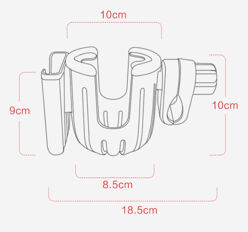 Зажим оснащен нескользящими резиновыми подушечками, которые обеспечивают устойчивость подстаканника в коляске даже на неровных дорогах. Зажим также можно поворачивать на 360 градусов в соответствии с вашими потребностями.