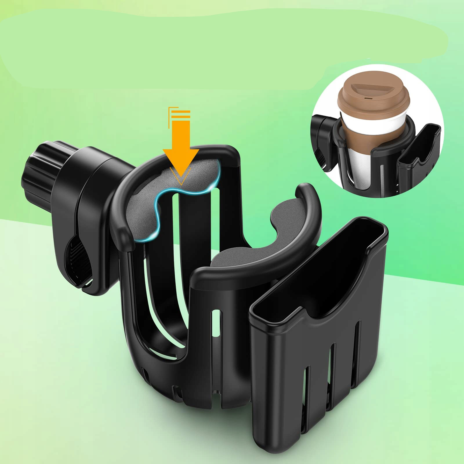 Подстаканник для напитков широко используется в большинстве колясок с палками, складных колясках, велосипедах, инвалидных колясках, ходунках, самокатах, беговых дорожках, газонокосилках, тележках для гольфа, тележках для покупок, офисных стульях, шезлонгах и т. д.